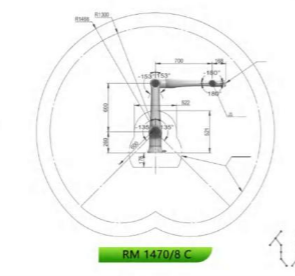 | Axis | Working Range (°) | RM 1100/4 C Max Speed | RM 1470/8 C Max Speed |